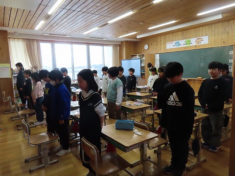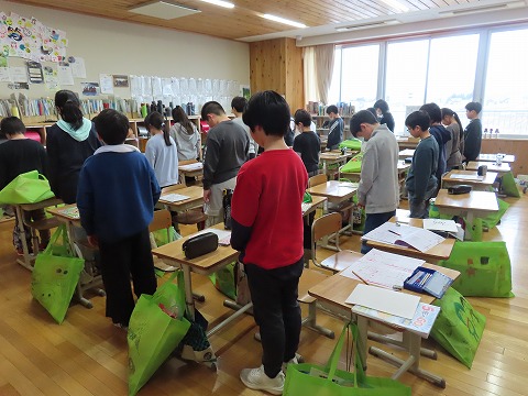 全校生で東を向いて黙とうを捧げました。下校と重なっていたため時刻は少し早めに行いました。