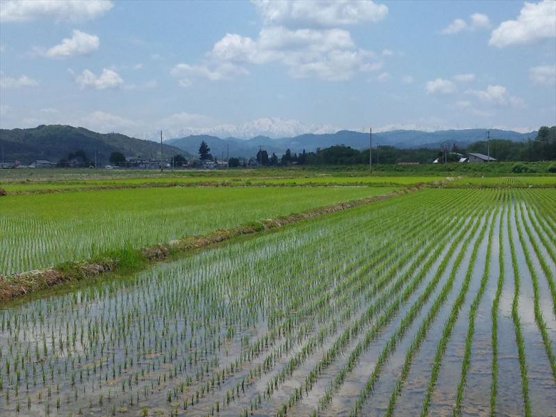 今日も天気が良かったですね。飯豊山と青々とした田んぼがきれいでした。