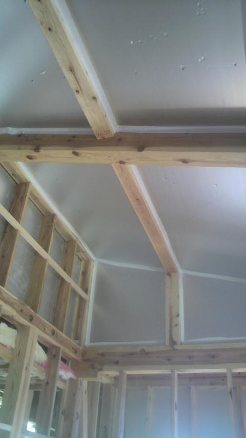 大工さんが組んでくれたがっしりとした無垢の梁に外断熱の