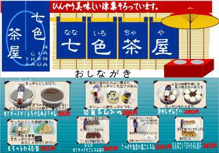 セブンイレブン七色茶屋の売場POPです。7月7日から順次発売されています。のれんの部分はジャストシステムの花子で作成しました。それをラベルマイティでまとめました。