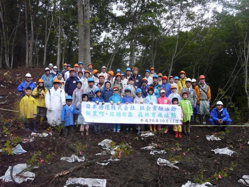 日通の森 森林育成活動秋ツアーが10月11日に行われました。合計40名が5班に分かれ、2,000uに800本のブナの植林を行いました。。