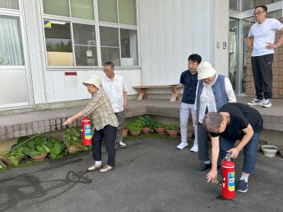9月17日(水)「白椿いきいき教室」の3時限目の活動があり、「防火訓練」と「ダリア園研修」を行いました。防火訓練では、避難訓練と消火訓練を行い、水消火器での消火活動を見事にこなしていました。