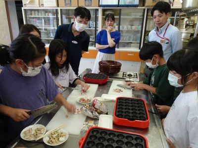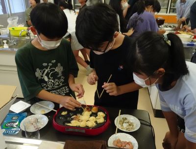 また、9月10日(水)には白椿地区まちづくりセンターにおいて「GO!GO!キッチン・たこ焼きパーティー」を開催し、具材の調理から焼き上げまで真剣に取組み、おいしいたこ焼きを作り上げました。