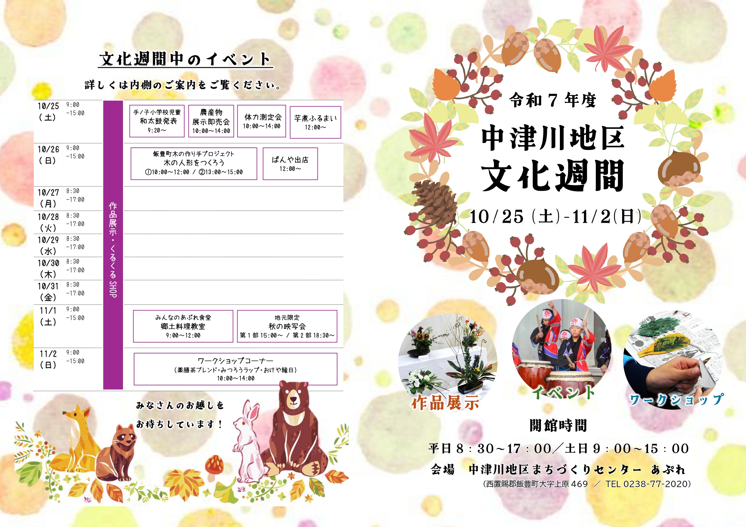 令和7年10月25日(土)~11月2日(日)【中津川地区文化週間】