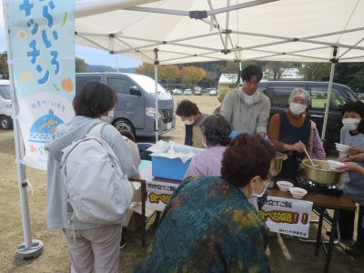 新米の食べ放題と振舞いの豚汁には、多くの人が集まりました。