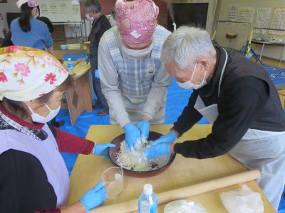 時間の関係上ふるさと学園メンバーでそば粉を事前に練っておきました。