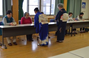 西嶋副町長のプロフィールをお聞きし、飯豊町副町長になられた経緯もお聞かせいただき、改めて嵐町長の熱意と副町長がその熱意に感銘し、副町長に就任される決断をなされた事。飯豊のお米の美味しさに驚かれた!など多岐に渡りお話をお聞かせいただきました。質疑応答の時間では、沢山の質問が出て、時間が足りなくなる程でした。 休憩を挟み初釜会の始まりです。色とりどりの着物に身を包み和装姿学級生の方もおられました。(数回センターに集まり着付けの練習をされていらっしゃいました。) 冒頭ではお菓子、お抹茶の頂き方を教えて頂き茶会での作法を意識しながら楽しく初釜会が行われました。