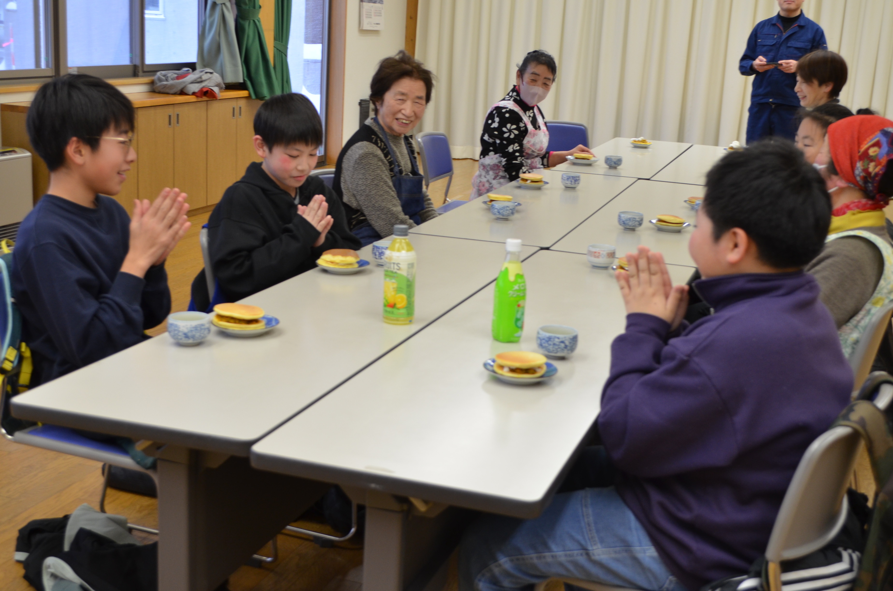 作り終えた後は、お手伝いしてくださった地域の皆さんと一緒に、み―んなで『いただきます』をしました~☺
