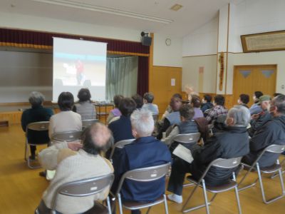 第2部の合同研修会では、綾小路きみまろのDVDを鑑賞しました。笑いのツボは人それぞれで、静けさのなか突然笑い出す人がいたり、笑いにつられてみんなが笑いだしたりと楽しいひと時を過ごしました。