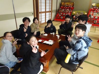 4日は、小学生が来館し、「甘酒と玉こんにゃく」を味わいながらのひな祭りとなりました。ちなみに子どもたちには甘酒は好みの味でなかったようです。