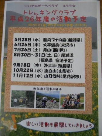 平成26年度のトレッキングクラブ