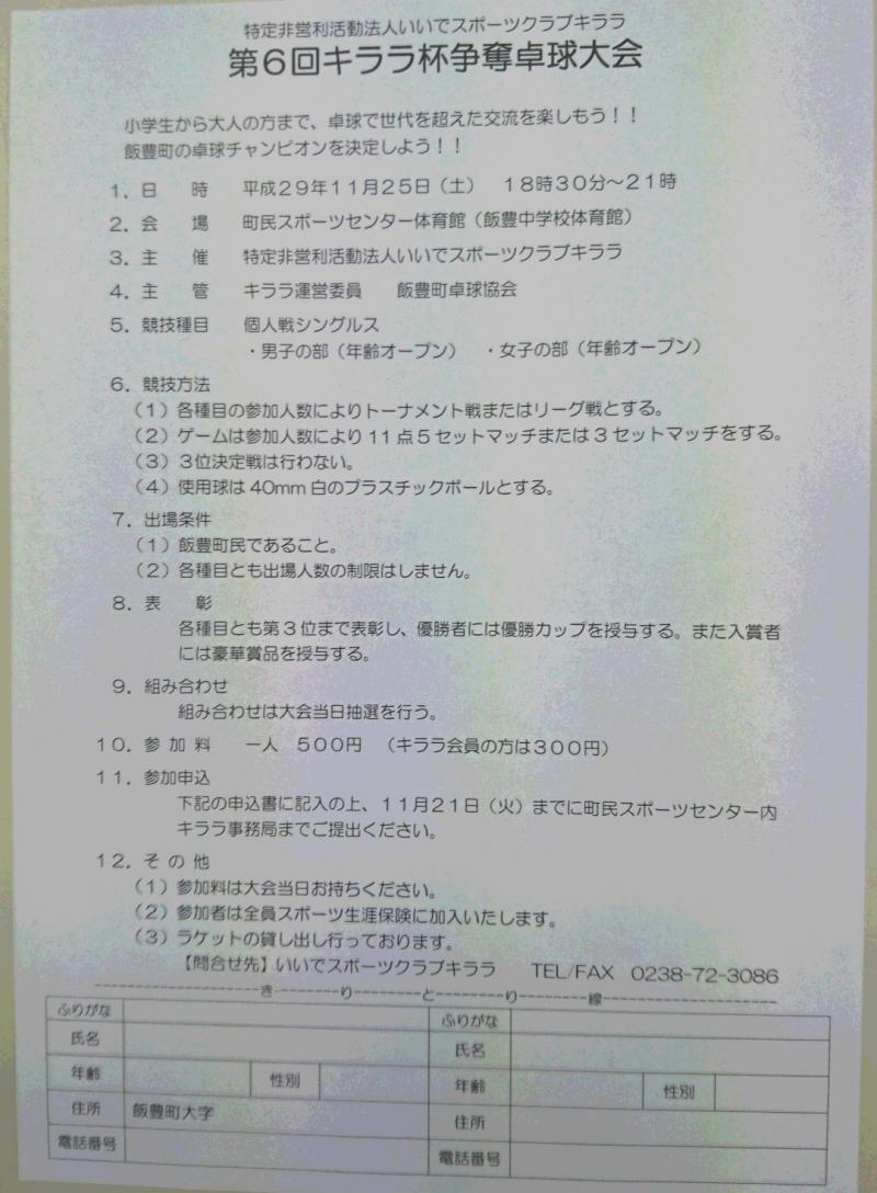 ▼キララ杯卓球大会のご案内