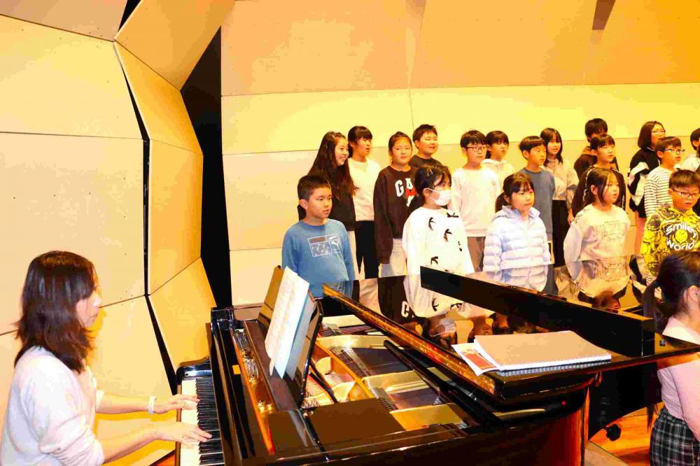 8日(土)に行われる、めざみの里音楽祭のリハーサルに全校生で行ってきました。