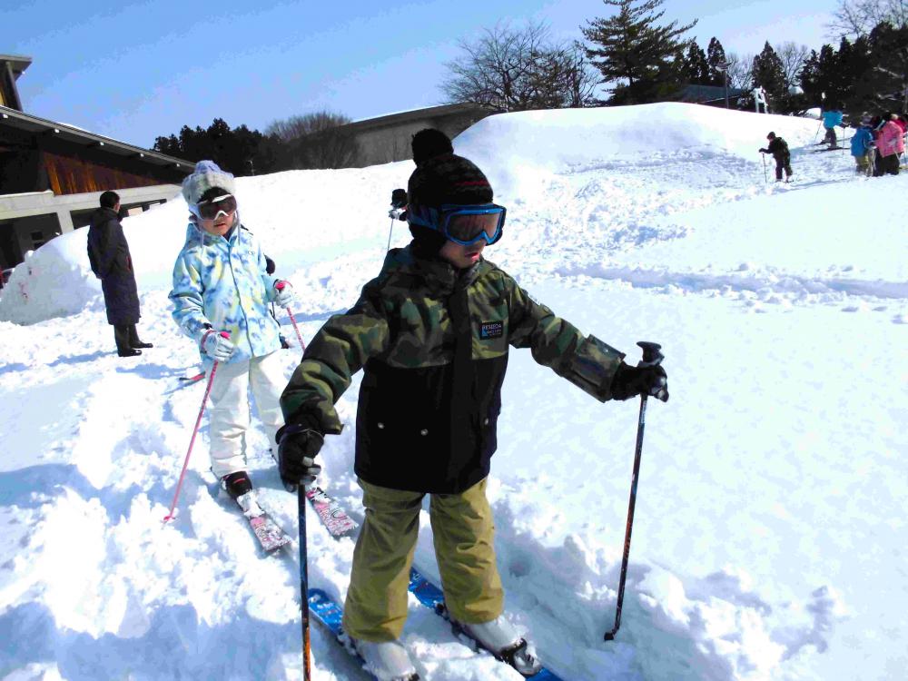 天気がよく気温が上がってしまい雪が重くなってしまいましたが、子供たちはがんばってスキーに乗りました。