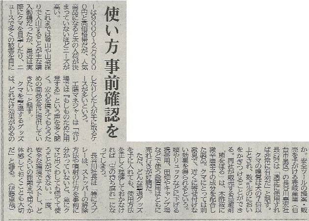 ※商品名は「熊をぼる」は青森の方言で「クマを追い払う」の意味です。