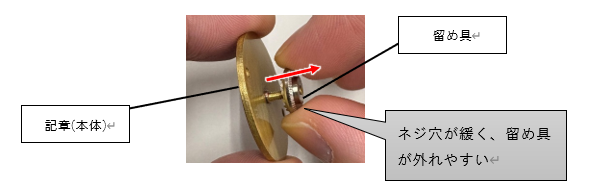 不具合が見られない記章の交換はいたしかねますのでご了承願います。