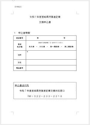 件名:令和7年度宮城県狩猟者記章交換について