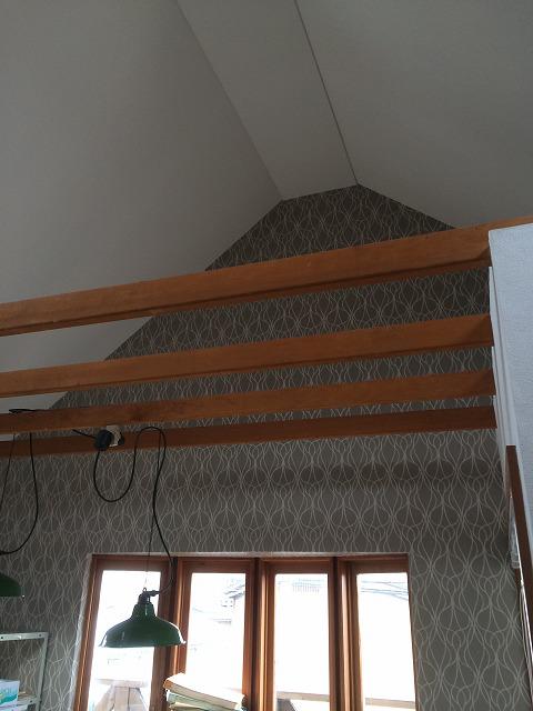 事務所の天井は変わった形をしていてクロスを貼るには大分めんどくさいです。