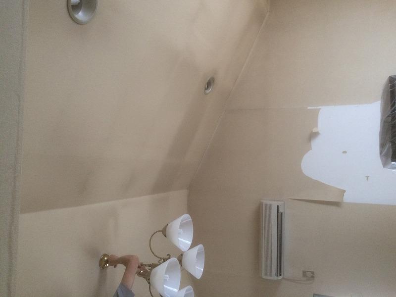 リビングの天井は勾配のある天井となっており電話口でお客様も心配していました。