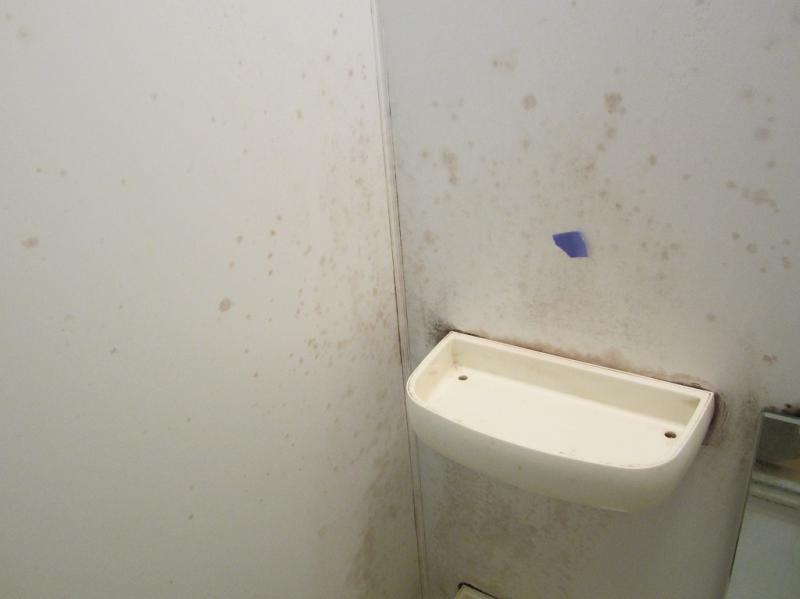 しばらくぶりです。 代表の井上です。 去年末まで大がかりな工事をしていたのであまりブログさわれませんでした; 世の中コロナで大変ですが、乗り切っていきましょう。 さて、内装業とは多岐に渡る商売で、天井や壁はもちろん、床や建具なども 張り物をする業種となっております。 その中でも珍しい案件がありましたのでご紹介します。 この件はアパートの現状復旧工事で対応したお部屋です。 3,4年の入居だったと思いますが、どうやらその間に浴室のカビを放置し、 色素沈着を起こしてしまって、どうにも落とせない汚れまで進化していたようです。 通常清掃を怠った例かと思いますので当然入居者に請求がかかったかと思います。