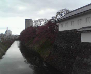 お堀沿いの桜は、少し咲くのが遅いようです。