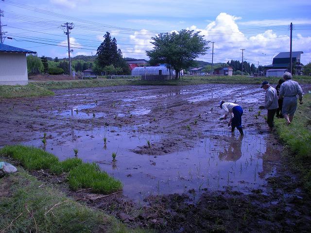先日川西町塩の沢の片倉さんちの田んぼで田植えをしました。