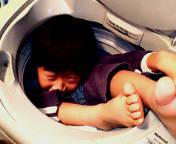 洗濯機に腰掛けて・・・