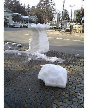 一週間お楽しみ戴いた雪燈籠でしたが、春1番の風でついに崩壊してしまいました。