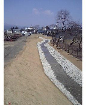 長井駅南の広場脇に整備しているせせらぎ水路がもうすぐ完成です。