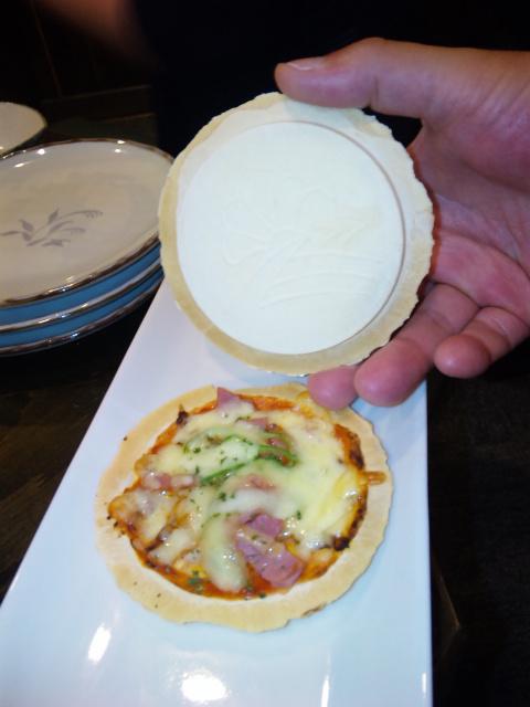 写真は、定番の南部煎餅にピザソースです。ピザ生地の代わりに南部煎餅です。