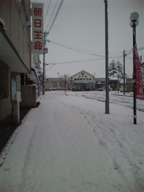 今朝の駅前はご覧のように雪景色です。