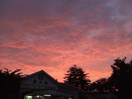 長井駅の後ろが綺麗なマジックアワーに。