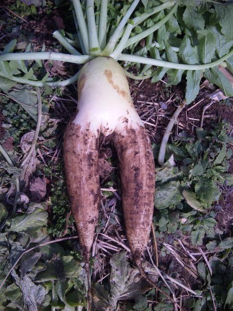 今年は猛暑のためか、大根の生育がいまいちのようで。