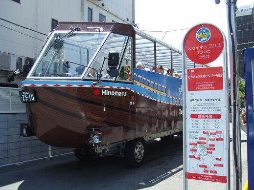 このバス(スカイダック)はスカイツリー周遊コースと亀戸周遊コースの2コースがあり、1バス40人を各コース1日4回運行している(ほぼ予約で満席状態で事前の予約が必要)。