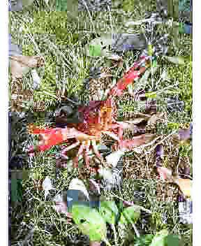ザリガニが歩いていたのでカメラを向けたら威嚇した。