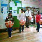 地元の山梨沢分校の創立110年式典での子どもたちの寸劇、その中での花笠踊りの様子です。