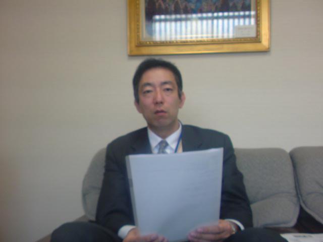 写真では、硬い服装をしてますが、銀行の応接室での一コマです。