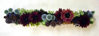 こちらはビバーナムです。市場にはへデラと言う名前で入荷したりもしますです。でも『これ本当に生なの』と思うような水色や紫の実です。パールのような光沢があります。白いお花にあわせるとシックな雰囲気が出ますねー。 今回入荷の品物は実のつき具合が少ないかなー。