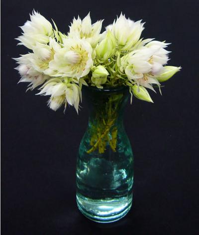 お手製のフラワーアシストを使って作ったご仏前のお花です。スターチスをワイヤーでとめて丸い形を作りそれを背景にお花を束ねました。結構大きくて重いです。お届け先では金色の花瓶に挿します。背景が白いので写真ではわかりにくいですが、実物はなんだか神々しいです。記念行事でご使用になるお花です。全国からお客様がいらっしゃるのだそうです。