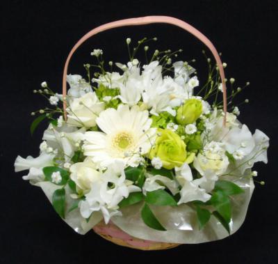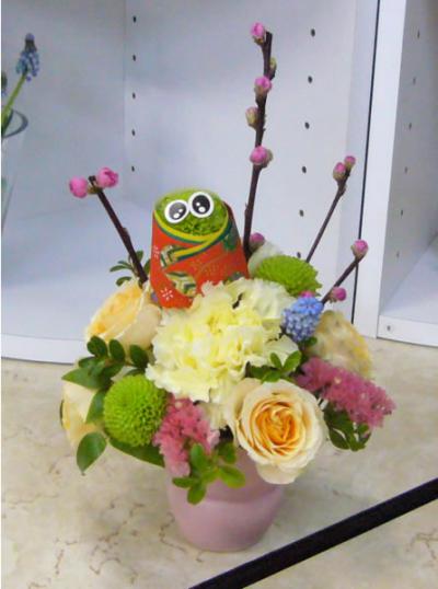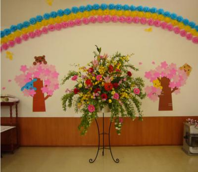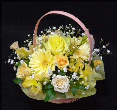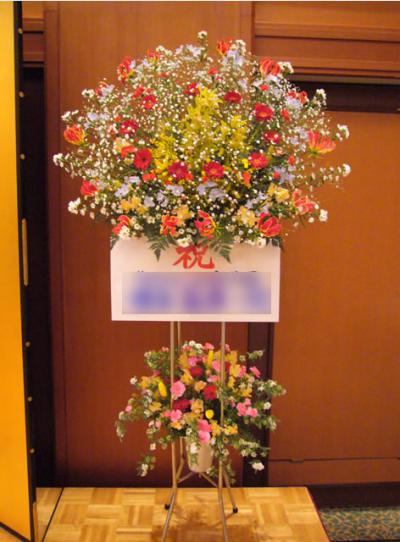 お祝い用のスタンド花です。今回は厚生労働大臣表彰の受賞パーティー用です。 ご夫婦にわたす花束と色を合わせて作りました。こちらは黄色がメインのお花です。奥様に渡す花束は黄色のバラがメインの花束です。 07-05-15追記 花代2万+消費税で21000円です。 税込み表示でした(〃_ 〃)ゞ |