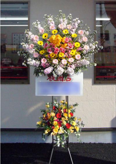 ラーメン屋さんの開店祝いのお花です。こちらは15000円 今回はいいストックが入荷していたのでストックで作りました。 07-05-15追記 花代1万5千円+消費税750円です。税込み表示でしたねー(^ ^;)ゞ |