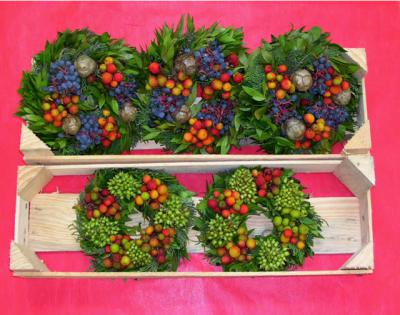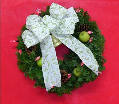 もみの木のリースにちょっとリボンとりんご、木の実をつけただけで あっというまにかわいいクリスマスリースの出来上がりー。 きっちりと作りこんであるので、時間がたって乾燥してきてもゆるくなりすぎる心配ありません。ちなみにりんごは本物の青りんご。 リボンと電気だけでもかわいいかも。 やっぱり生はいいなー。造花も毎年飾れるけど本物はやっぱりちがいます。 |