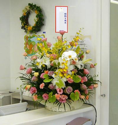 こちらの医院さんは出来たばかりだなーなんていつも思っておりましたが、いつの間にやら5周年なのだそうです。 一年があっという間に感じるのは年のせい? なんてことはさておき、お花は受付のテーブルの上においていただきました! |