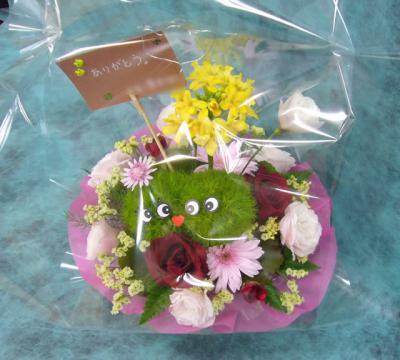 フラワーパパです。ピンポン菊にシールと針金でめがねを作ってお父さんの顔を作りました。2625円です。
