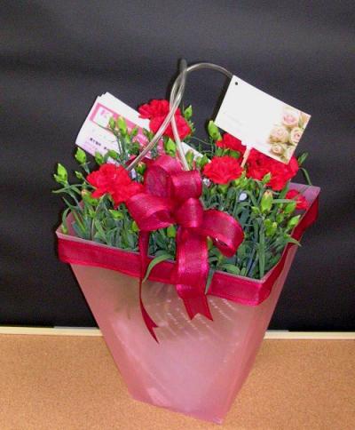 母の日に手作りアレンジメントはいかがでしょう。お店で売っているようなアレンジメントだとなかなか基礎が分からないとうまくまとまりませんが、このように一列に並べるだけでもなかなか可愛いアレンジメントに仕上がりますよー。