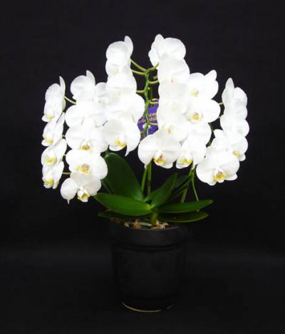 ミニ胡蝶蘭入荷しました。高さは約50センチ。今の時期はお買い得価格の5250円となっております。これが3月や12月なら8400円〜10500円まで相場が上がります。これから夏に向かってどんどん暖かくなるので扱いもらくですね。贈り物にいかがですか。