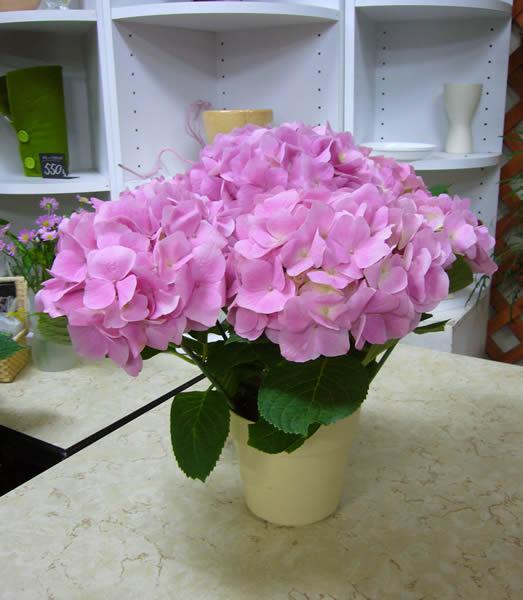 ピンクの豪華なお花が咲いています。ボリュームたっぷり。こちらは3150円です。最近は日にちがたつと色がかわるアジサイも出ていますが、こちらは特別色がかわる種類ではありません。
