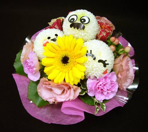こちらの画像は、パパを囲んでお母さんと子供が『パパ大好きー』と言っているイメージで作ってみました。『フラワーファミリーパパ大好き』2625円です。そのままの名前ですよ。お子様が二人のときはお顔ひとつ315円で追加いたします。