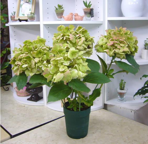 6月に仕入れたあじさい『ジューンブライド』。淡いピンクの大きな花でしたが、育て方の説明書を見ると2ヶ月ぐらいするとグリーン、そしてピンクに色づいてくる写真が載っていました。私も今年初めて『ジューンブライド』を仕入れたのでどんなものか試しておりました。
