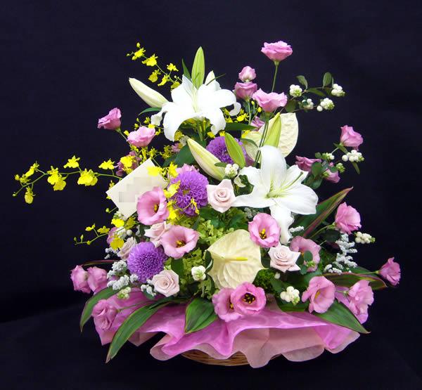 こちらはお花が好きなお母様へのお誕生日のお祝いのお花です。こちらのお母様のお宅には時々お花をお届けする機会がありますが、伺うたびに季節のお庭の花をさりげなく素敵に飾っていらっしゃいます。